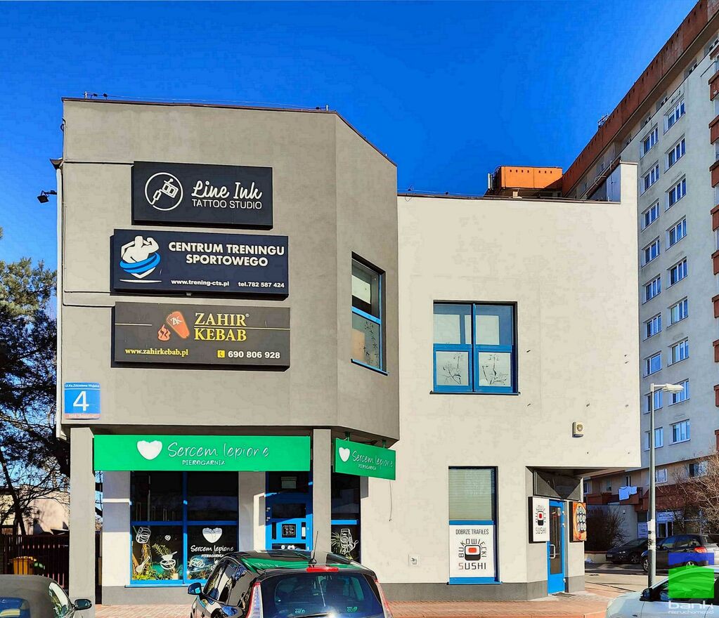 Bardzo dobra lokalizacja w otoczeniu liczne sklepy, punkty usługowe oraz parkingi dla klientów i pracowników.