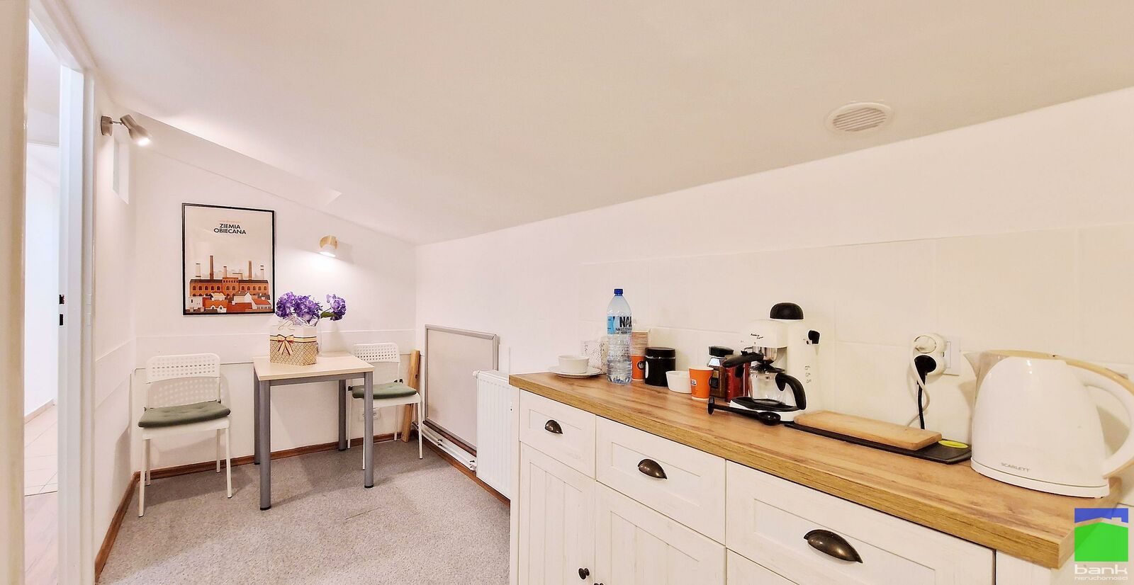 Trzy niezależne pomieszczenia biurowe na poddaszu, pom. socjalne, 2x wc,