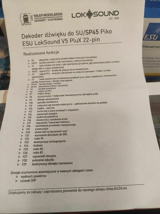Cyfrowo sterowany model lokomotywy spalinowej SM 45 era V. Dwa moduły sterowania cyfrowego.Ponad 30 dostępnych funkcji.( Potrz fotografia)Model jest nowy na gwarancji nigdy nie używany.