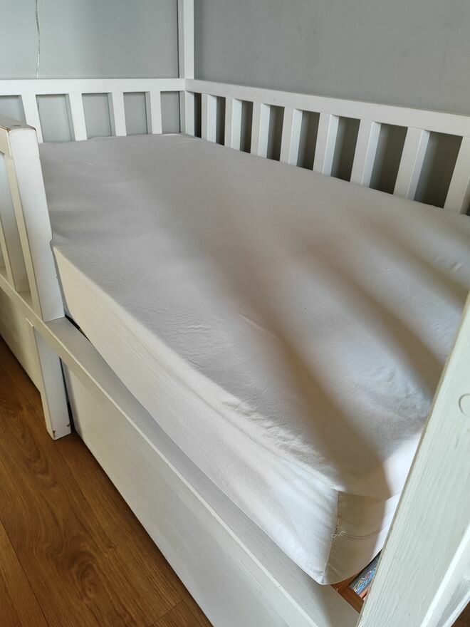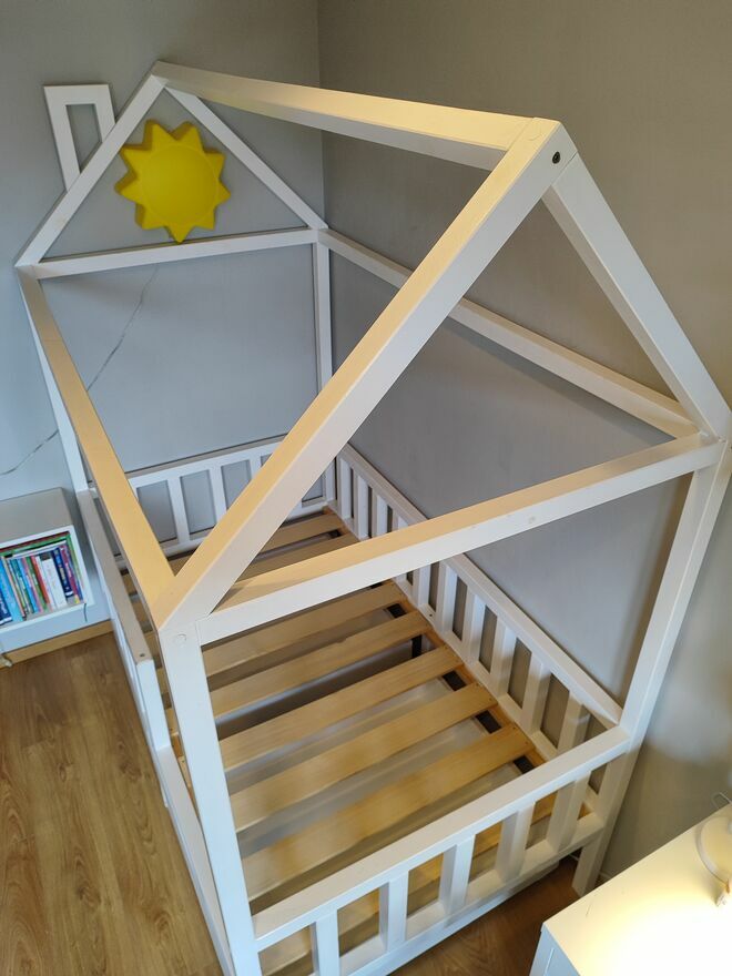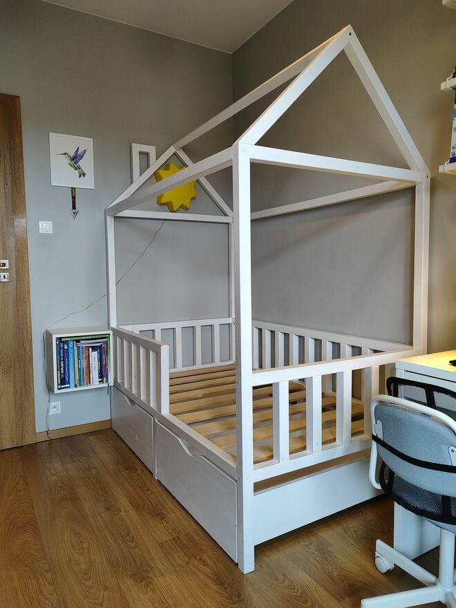 Do sprzedania mam łóżko dziecięce domek.Łóżeczko wykonane jest z litego drewna przez stolarza, co czyni je dużo trwalszym niż marketowe. Jest w świetnym stanie, nosi normalne ślady użytkowania. Do łóżeczka dołączam materac.