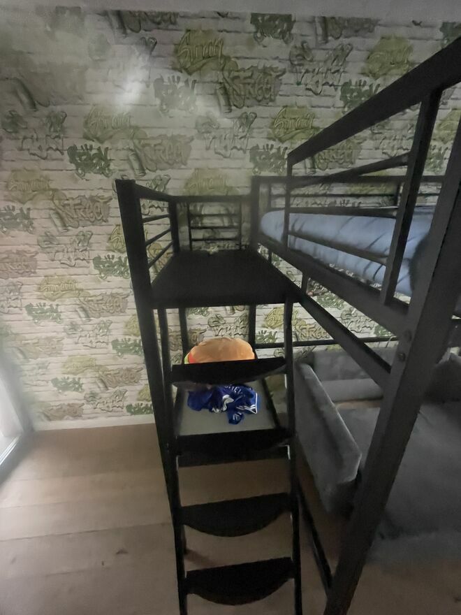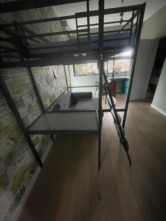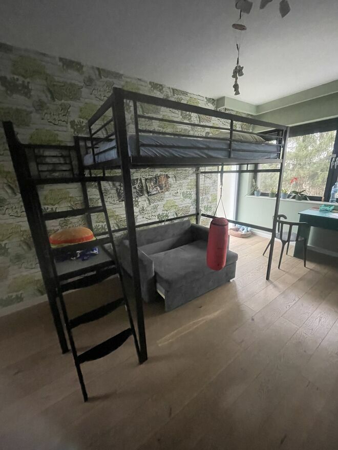 Do sprzedania łóżko piętrowe z możliwością zagospodarowania miejsca pod łóżkiem.Długość całkowita 252 cm, szerokość 197 cm.
