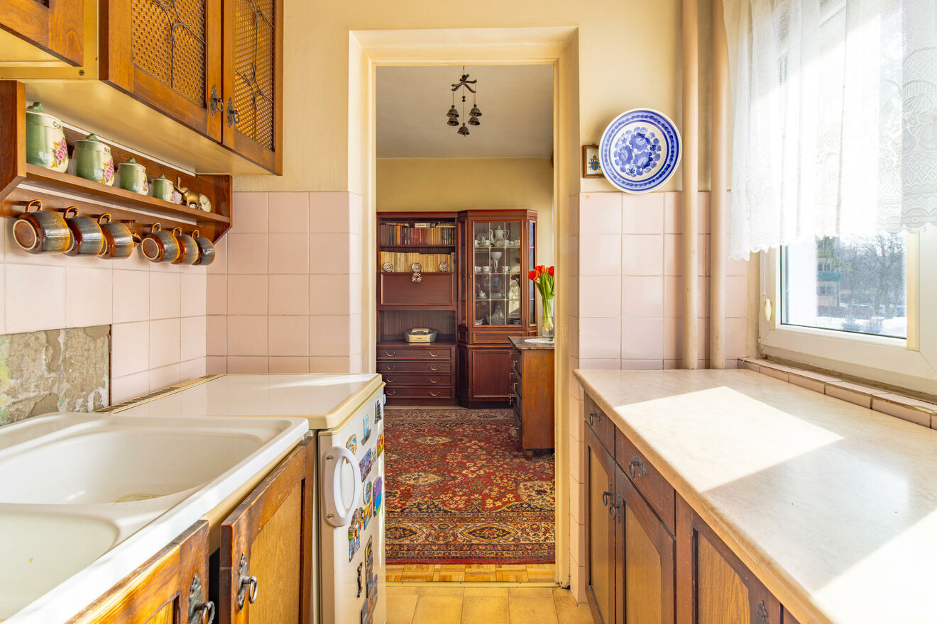 Stan mieszkania do odświeżenia. Lokal daje możliwość aranżacji wnętrza według własnych potrzeb i standardu.
