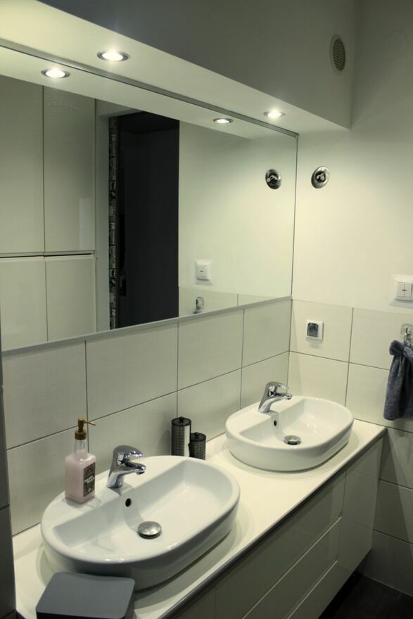 - Kuchnia na wymiar w zabudowie (fronty lakierowane) ze znaczną ilością miejsca do przechowywania.