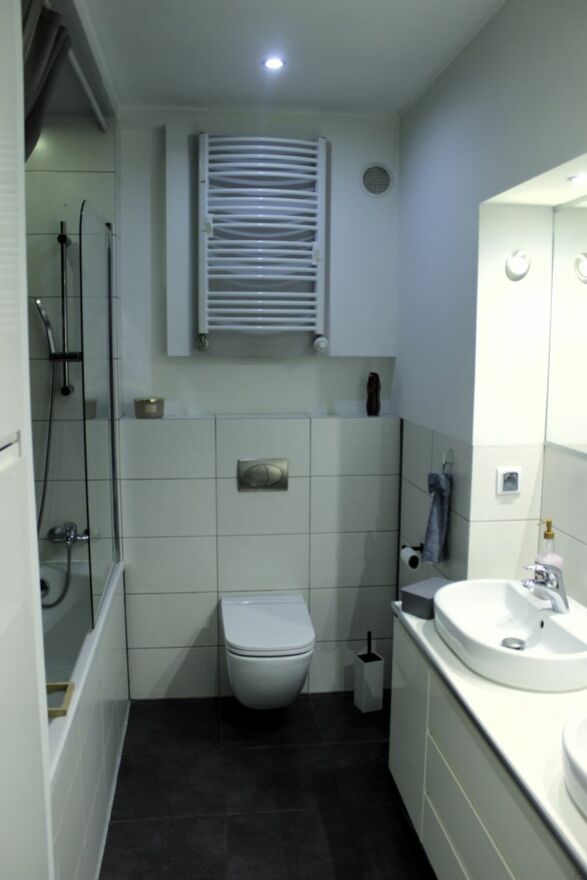 · Łazienka: wanna, WC, pralka oraz miejsce do przechowywania (szafa i szafka podumywalkowa).