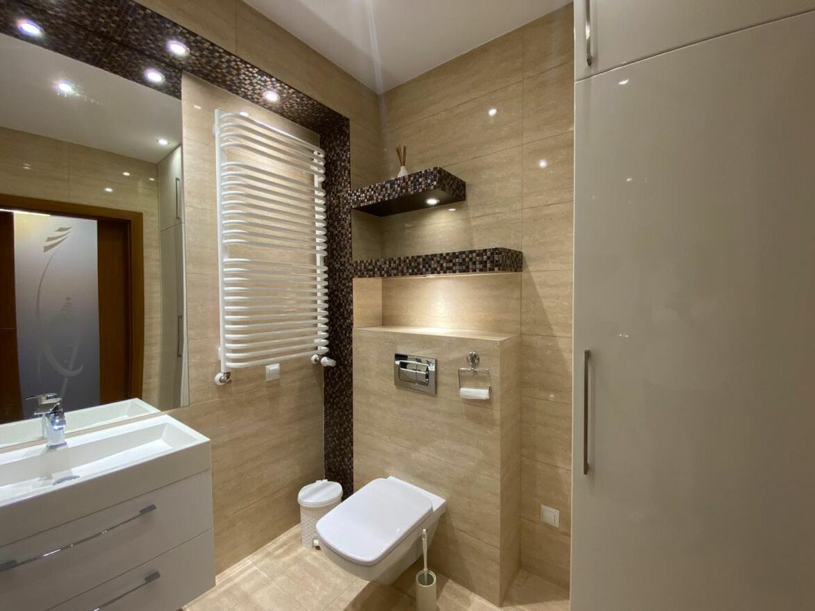 Mieszkanie jest komfortowe i nowocześnie wykończone, w pełni wyposażone - sprzęt AGD w cenie (lodówka, piekarnik, płyta indukcyjna, zmywarka, pralka).