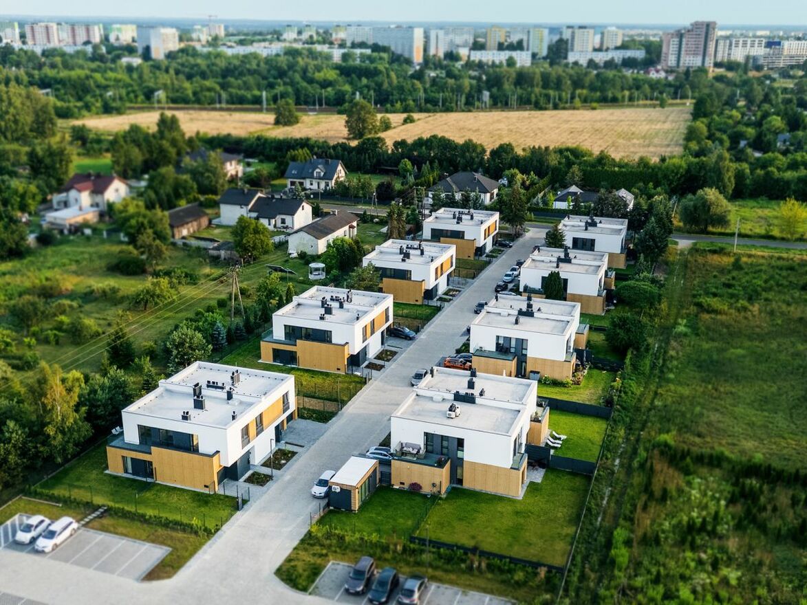 Całe osiedle składa się z 8 budynków w zabudowie bliźniaczej, co gwarantuje kameralny charakter, prywatność oraz ciszę. Idealne dla osób szukających przestrzeni i ciszy, dla klientów ceniących kameralne osiedla z niską zabudową.