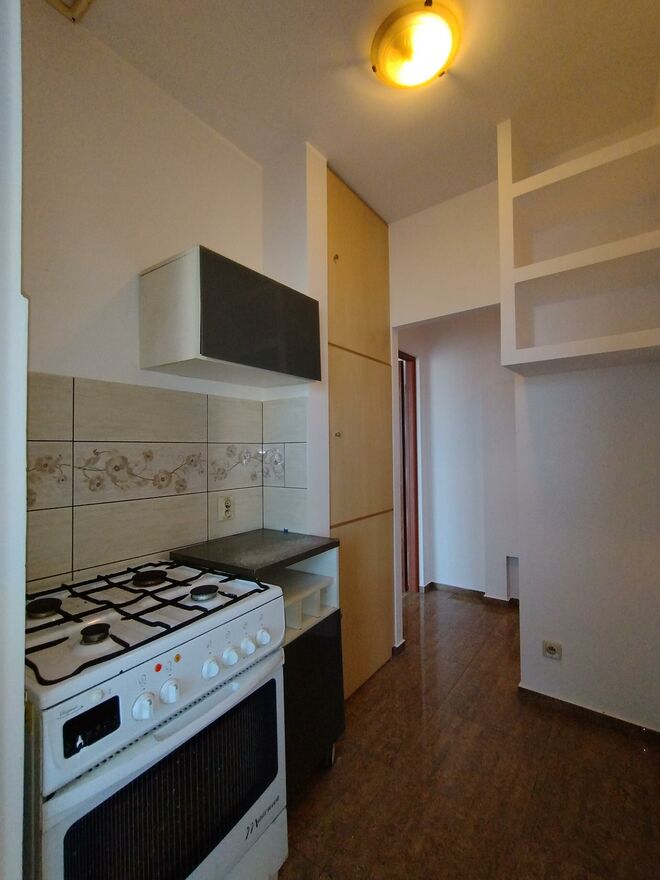 Mieszkanie w dobrym stanie, do odświeżenia, okna pcv, balkon. Układ: dwa pokoje, kuchnia w aneksie, łazienka z toaletą, przedpokój.