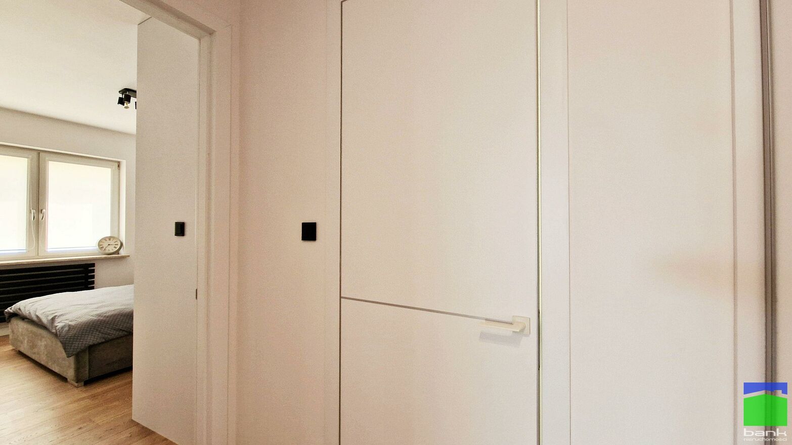 Mieszkanie w pełni wyposażone (lodówka, piekarnik z funkcją mikrofali, zmywarka, pralka). Drzwi wewnętrzne h: 230 cm.