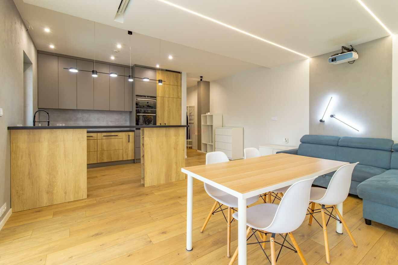Układ pomieszczeń:- Przestronny salon z wyjściem na taras,- Kuchnia z meblami w zabudowie i sprzętem AGD,- Sypialnia,- Gabinet lub pokój dziecięcy,- Łazienka z wanną i WC,- Przedpokój,- Komórka lokatorska na piętrze (2,8 m).
