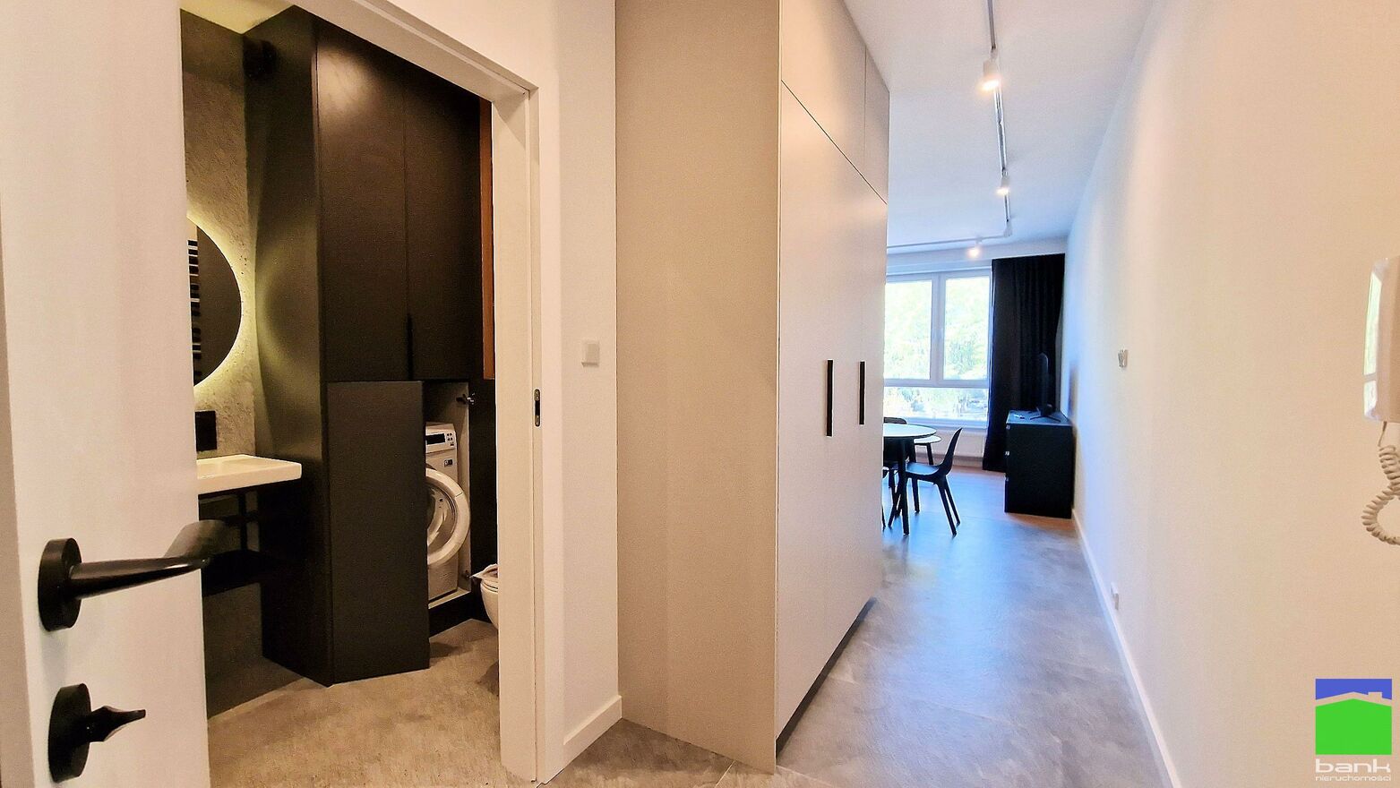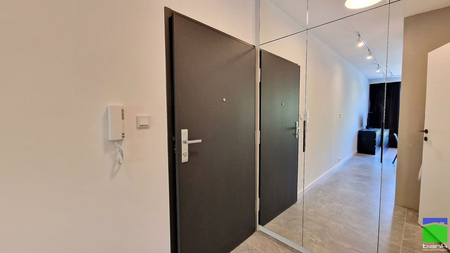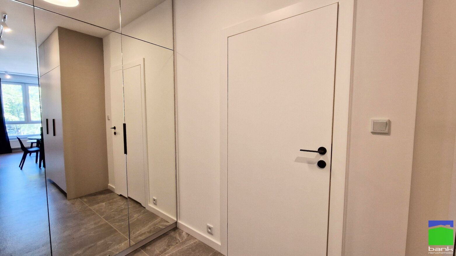 Przedpokój z dużą szafą w zabudowie.