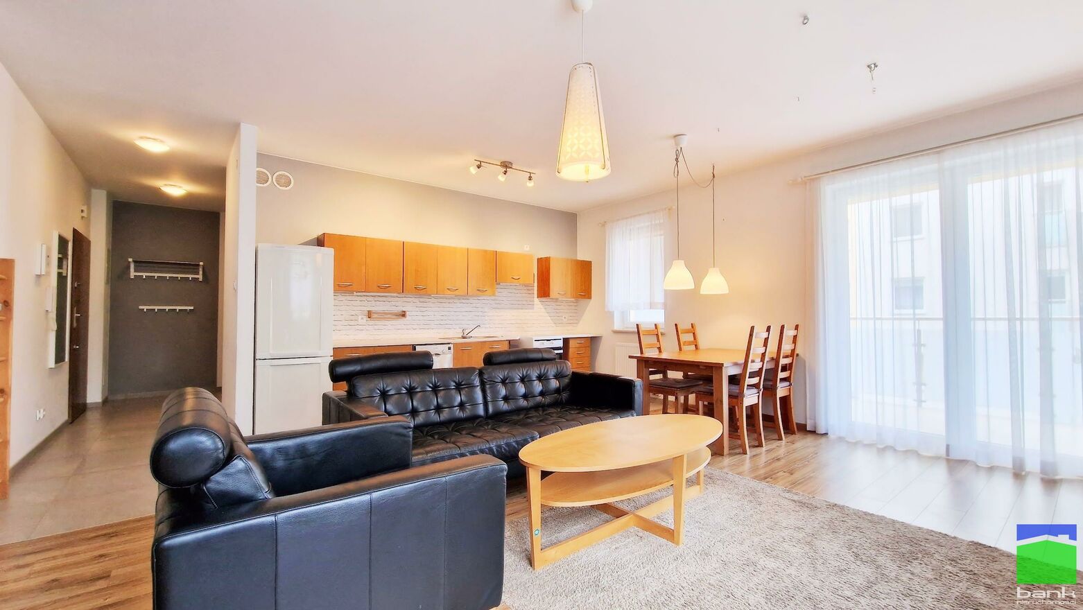 Strefę dzienną stanowi przestronny widny salon z aneksem kuchennym (33,79 m2) i wyjściem