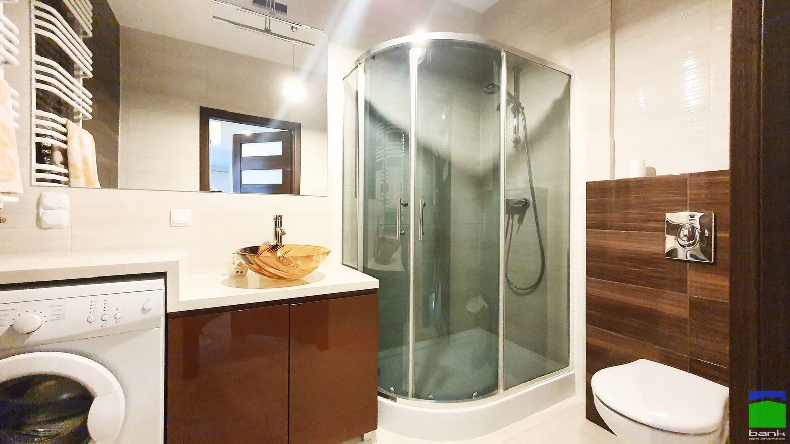 Łazienka z kabiną prysznicową. Garderoba w przedpokoju.