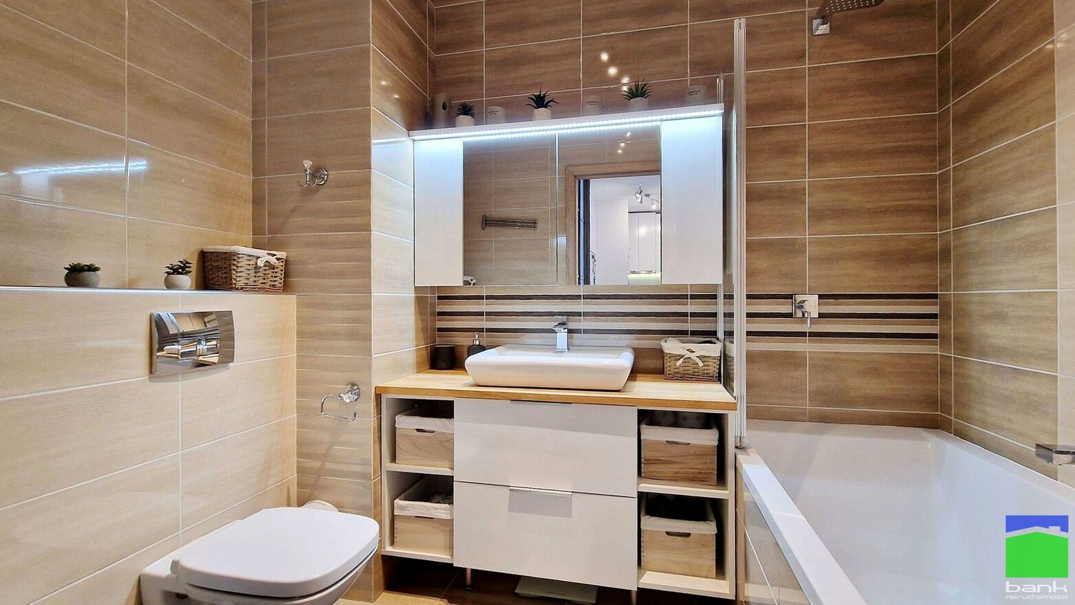 - przedpokoju (7,34 m2) z praktyczną zabudową meblową.