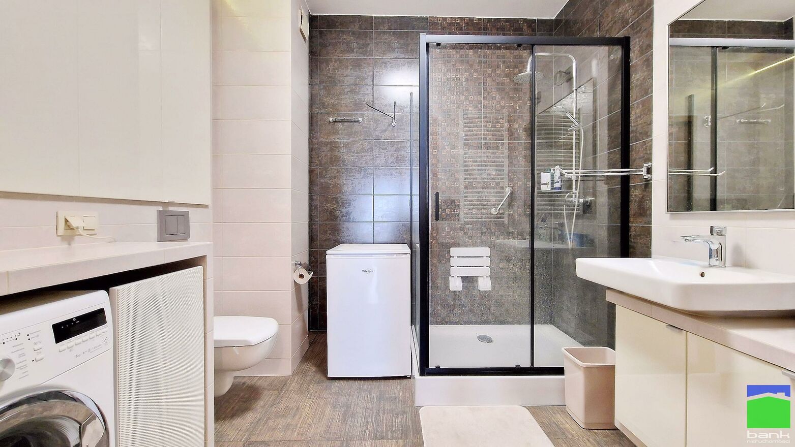 - przestronnej łazienki z kabiną prysznicową i szafkami