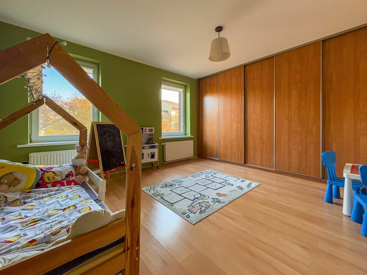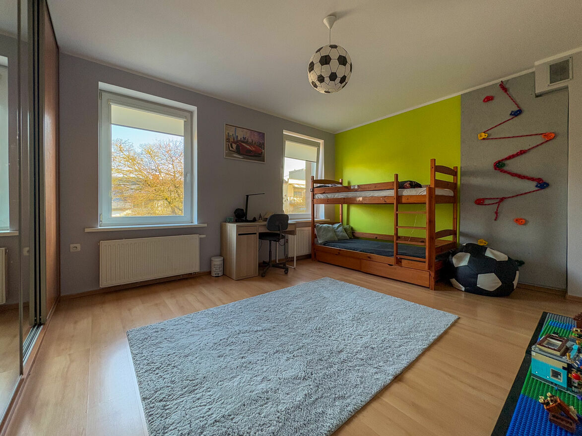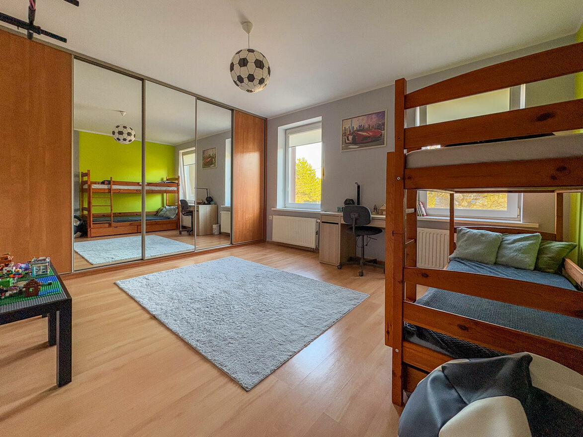 Dwa duże pokoje z pojemnymi szafami przesuwnymi (okna od wschodu)