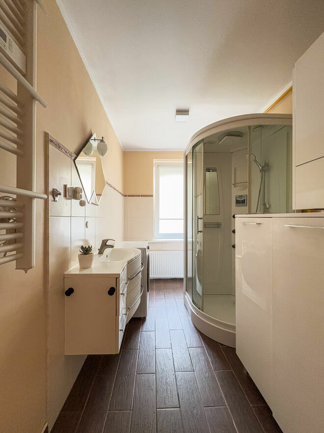 Nowoczesna łazienka z WC i prysznicem