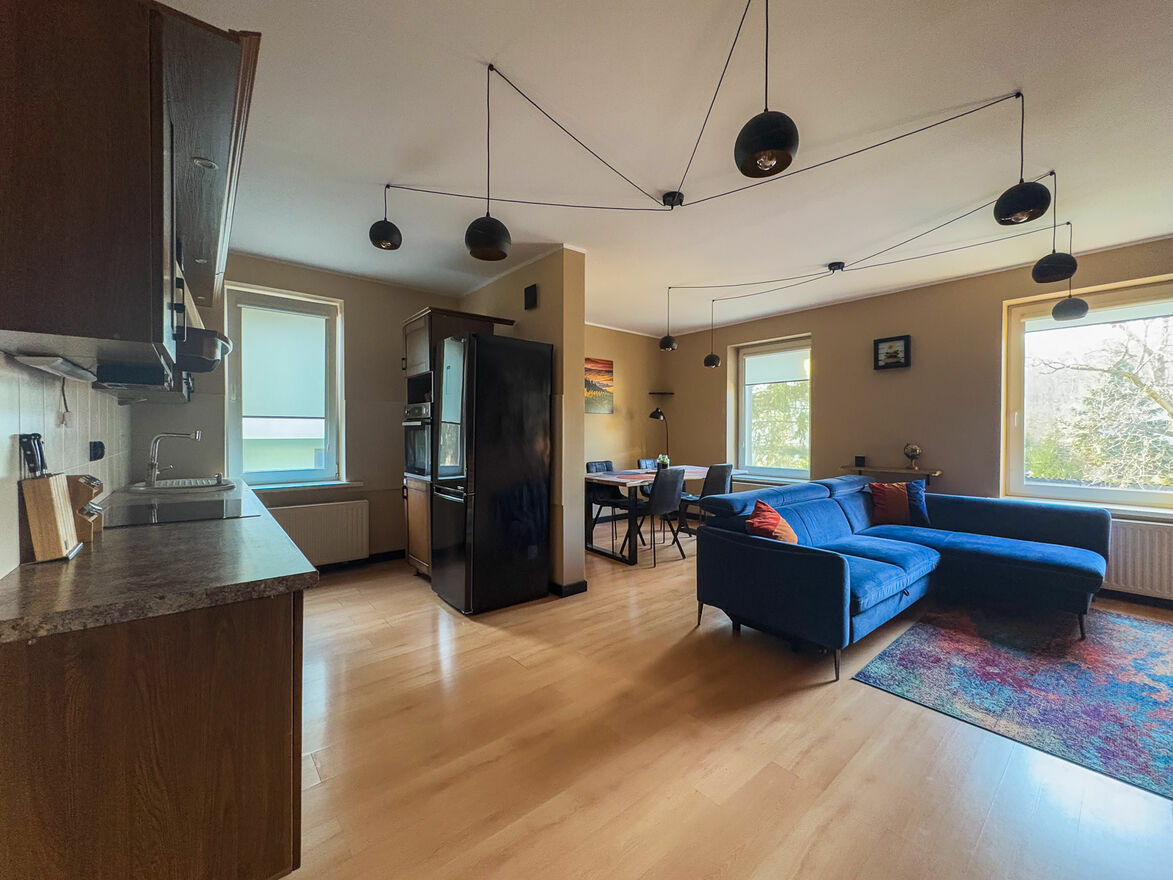Przestronny salon z aneksem kuchennym (okna od zachodu)