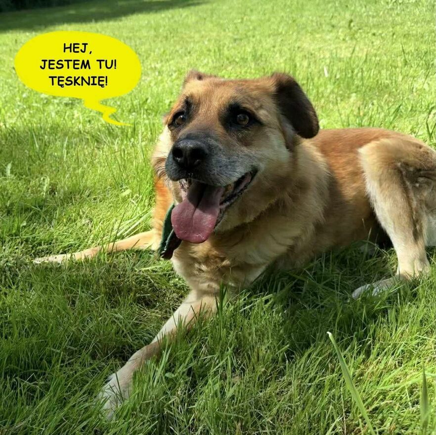 Jestem dużym rudym psem z siwym pyskiem. Trochę już choruję, ale mam wielkie serce i wierzę, że jeszcze zdarzy się cud.