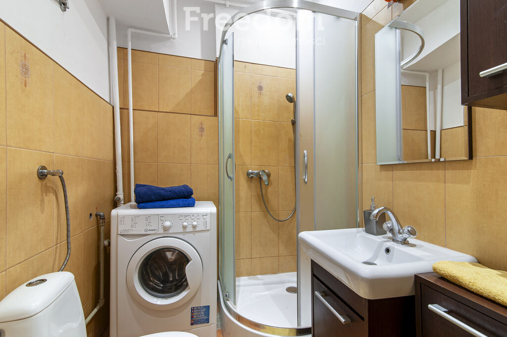 w cieple dni. Łazienka z wygodną kabiną prysznicową, duża pralką