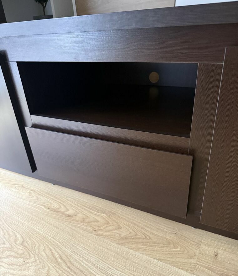 Oferuje szafkę RTV z Agatą Meble - 1 szuflada, 1 półka otwarta i 2 szafki zamknięte), wymiary 50/135/45cm. Kolor wenge- ciemny brąz. Odbiór osobisty.Sprawdź zainteresowanie tym ogłoszeniem
