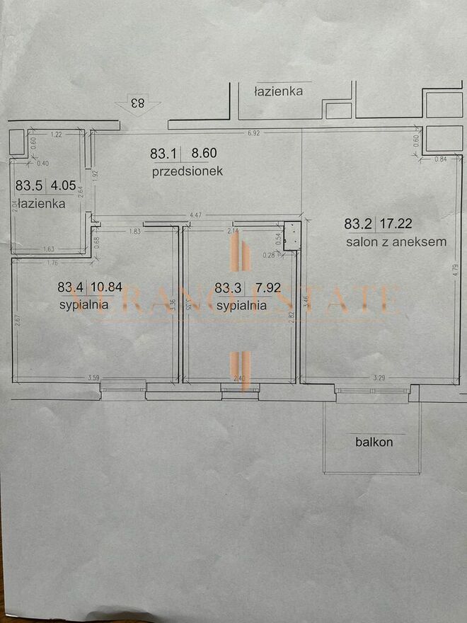 – jasny salon z aneksem kuchennym (17 m²) z wyjściem na balkon
