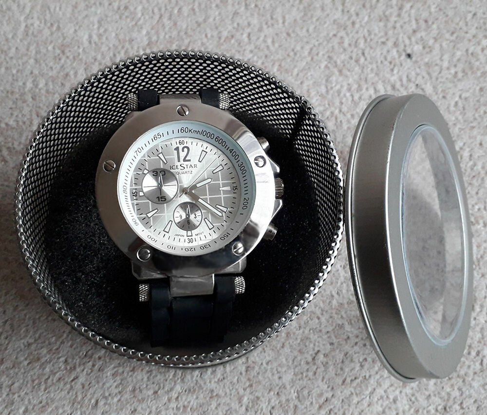 Sprzedam nowy męski zegarek IceStar . Mechanizm kwarcowy, pasek czarny silikonowy wymienny. Idealny na prezent (w pudełku jak na zdjęciu)Całkowita długość 26,5 cm.