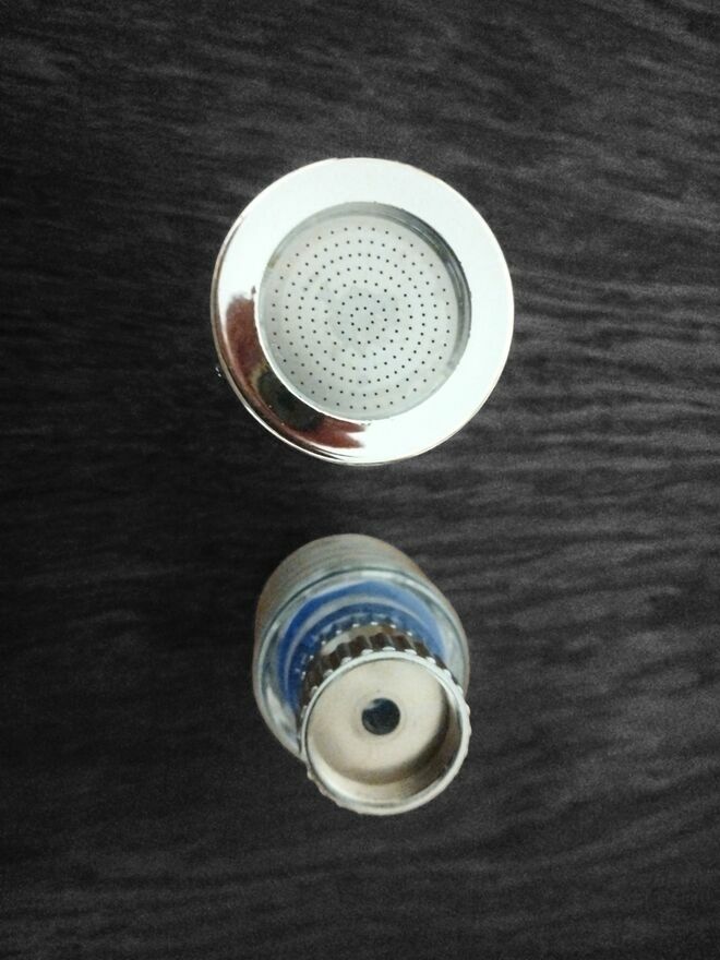 Urządzenie miesza wodę z powietrzem, co zwiększa strumień przy mniejszym zużyciu wody.Na trzecim foto widać dla porównania kremowy kolor filtra po tygodniu użytkowania,a na ostatnim tak może wyglądać po dwóch miesiącach użytkowania jak te filtry prysznicowe.