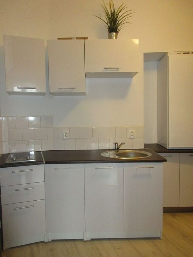 Aneks kuchenny: szafki stojące i wiszące, kuchenka elektryczna,
