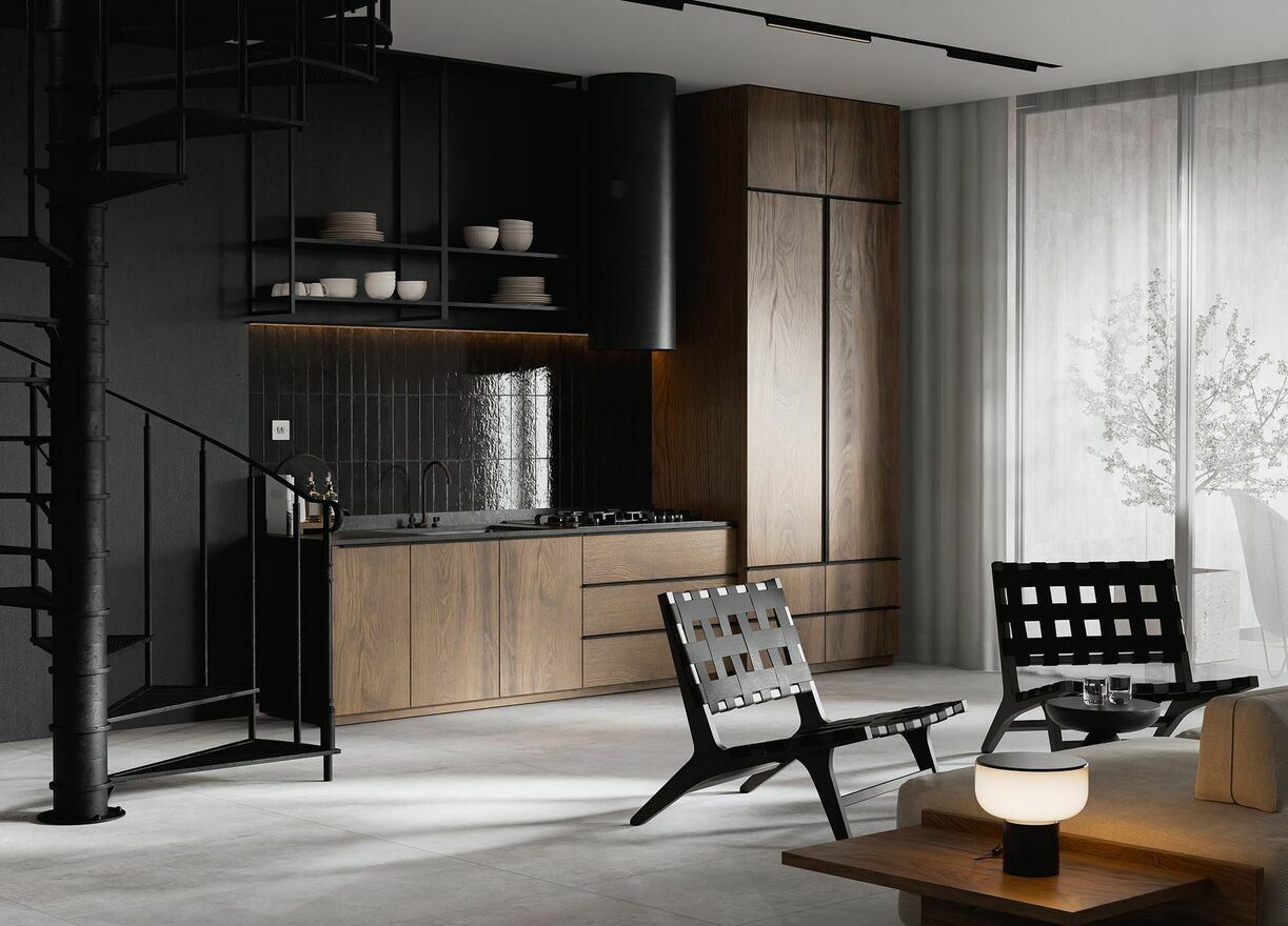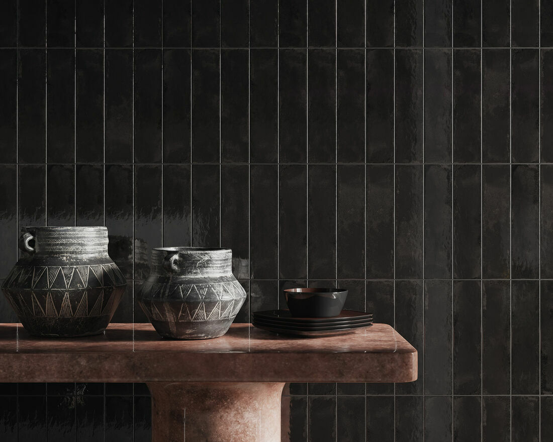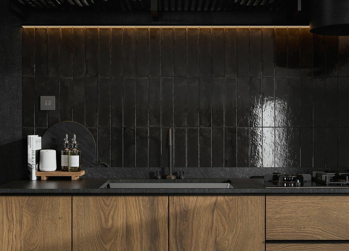 Płytki cegiełki 30x7 kuchenne między szafki Palette black