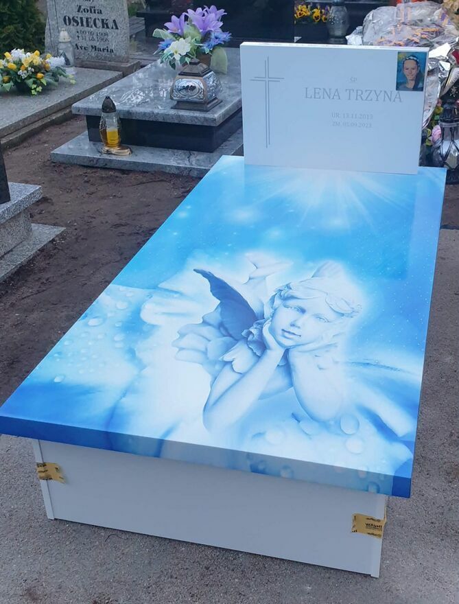 Nagrobek dziecięcy 50x80x20 cm tablica wysokość 40 cm 1400 złNapisy grawerowane laserem za wszystkie litery krzyż sentencje 550 zł