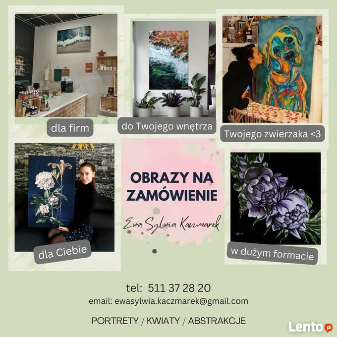 Wszystkie obrazy są malowane na płótnie i gotowe do powieszenia bez ramy.
