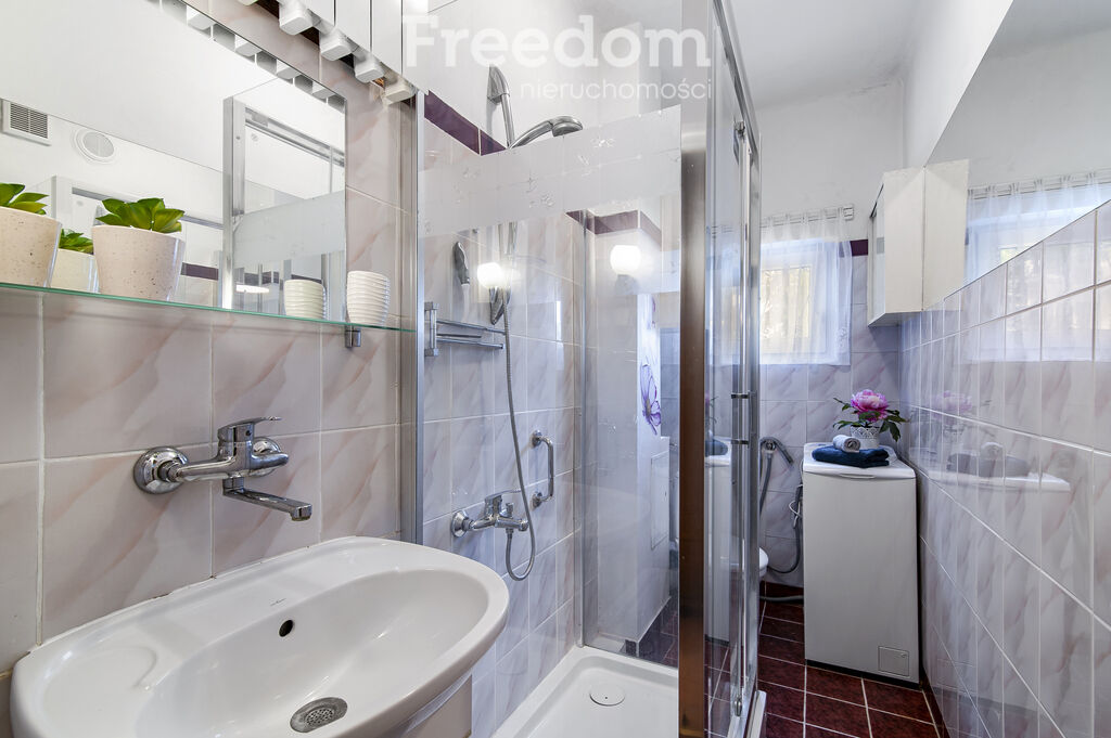 kabiną prysznicową i WC (4 m2), całość uzupełnia mniejszy pokój