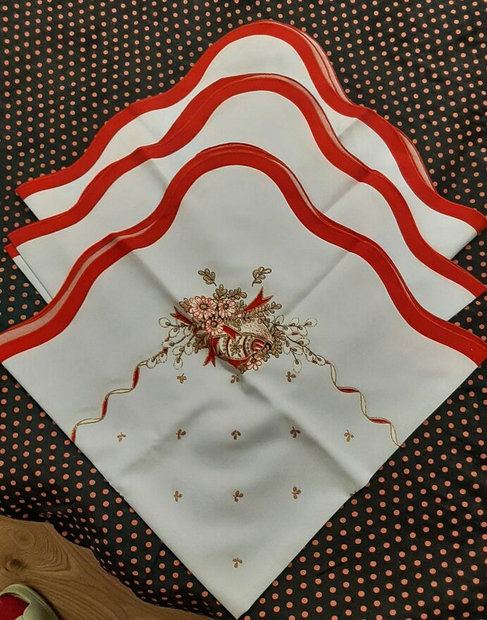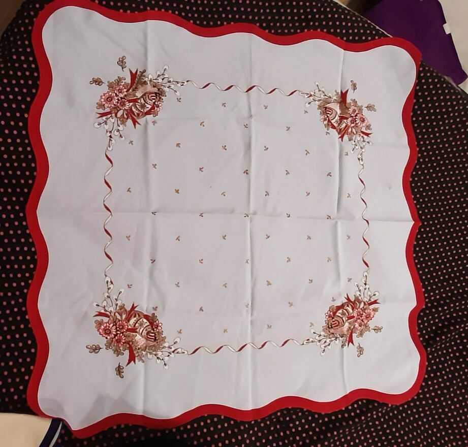 Sprzedam nowe serwety wielkanocne, rozmiar 60 x 60 , 3 szt białe z czerwoną lamówką i 3 szt.ecru z fioletową lamówką. Cena za 1 szt.25 zł, cena za 6 szt.120 złSprawdź zainteresowanie tym ogłoszeniem