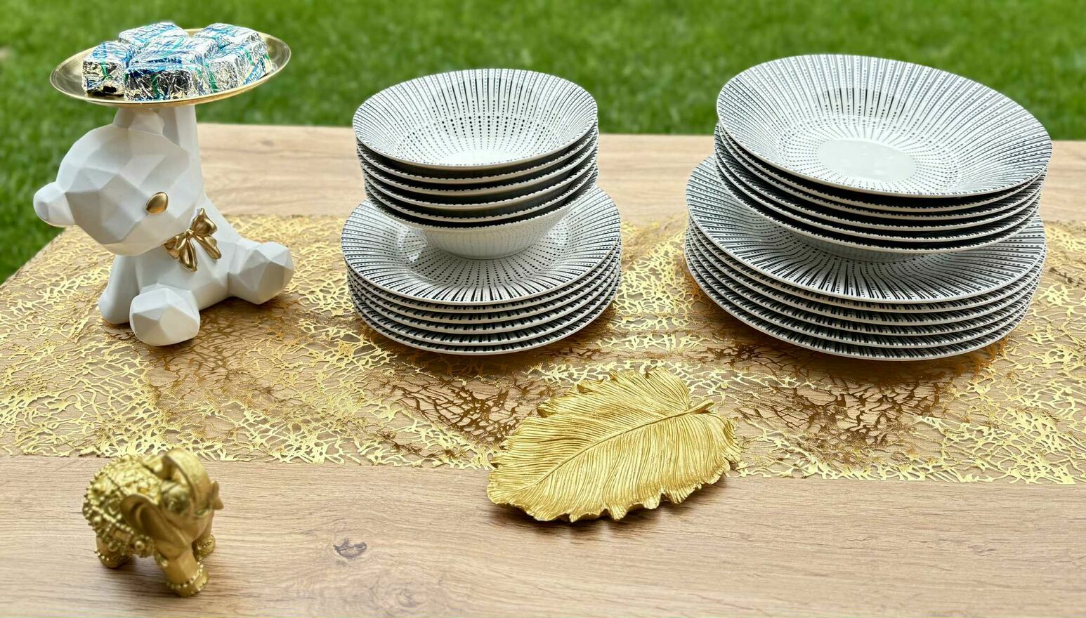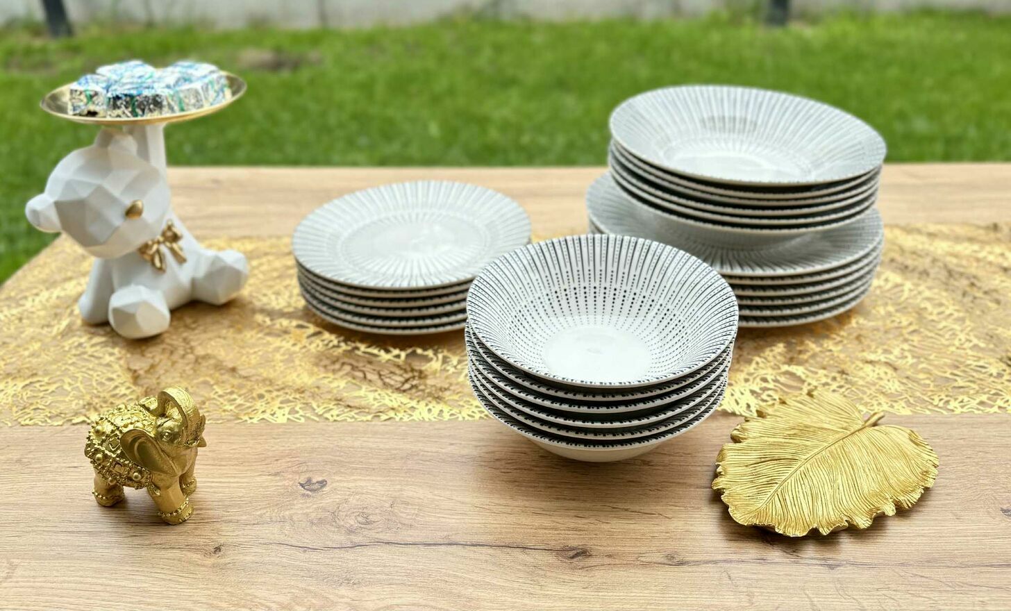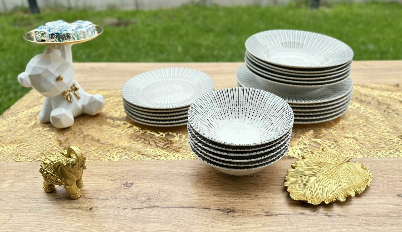 Zestaw obiadowy idealny do każdej kuchni czy jadalni. minimalistyczne wzornictwo. Zestaw w oryginalnym kształcie. Komplet obiadowy składa się z 24 elementówi przeznaczony jest dla 6 osób.