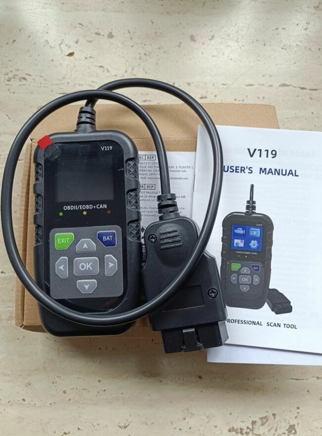 W ofercie mamy skaner OBDII V119 narzędzie diagnostyczne czytnik kodów - wersja na rok 2025. Skaner jest nowy, nigdy nie był używany.