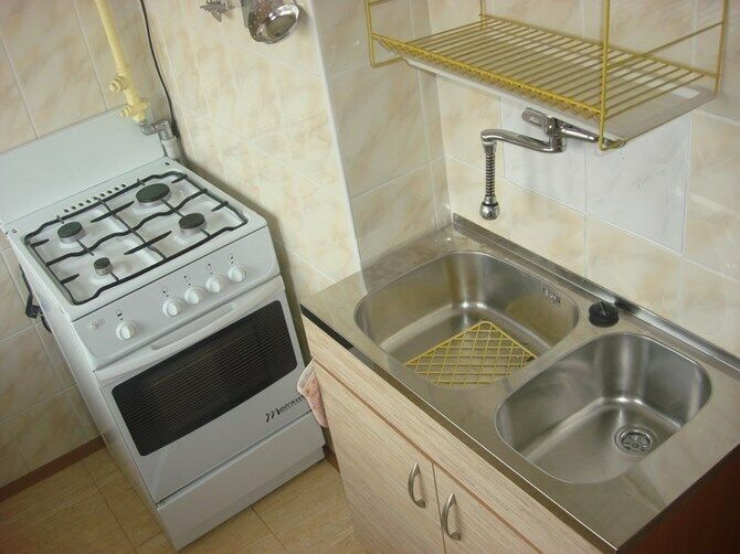 czteropalnikowa z piekarnikiem, zlewozmywak, mikrofalówka.
