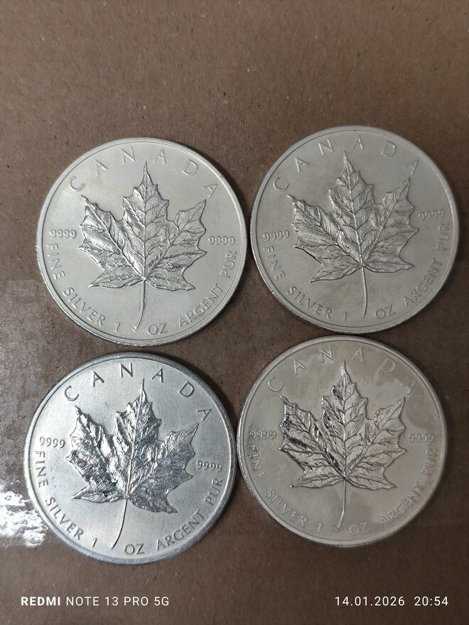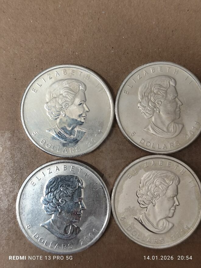 Srebrne monety z śladami milkspotyLiść klonu 2011