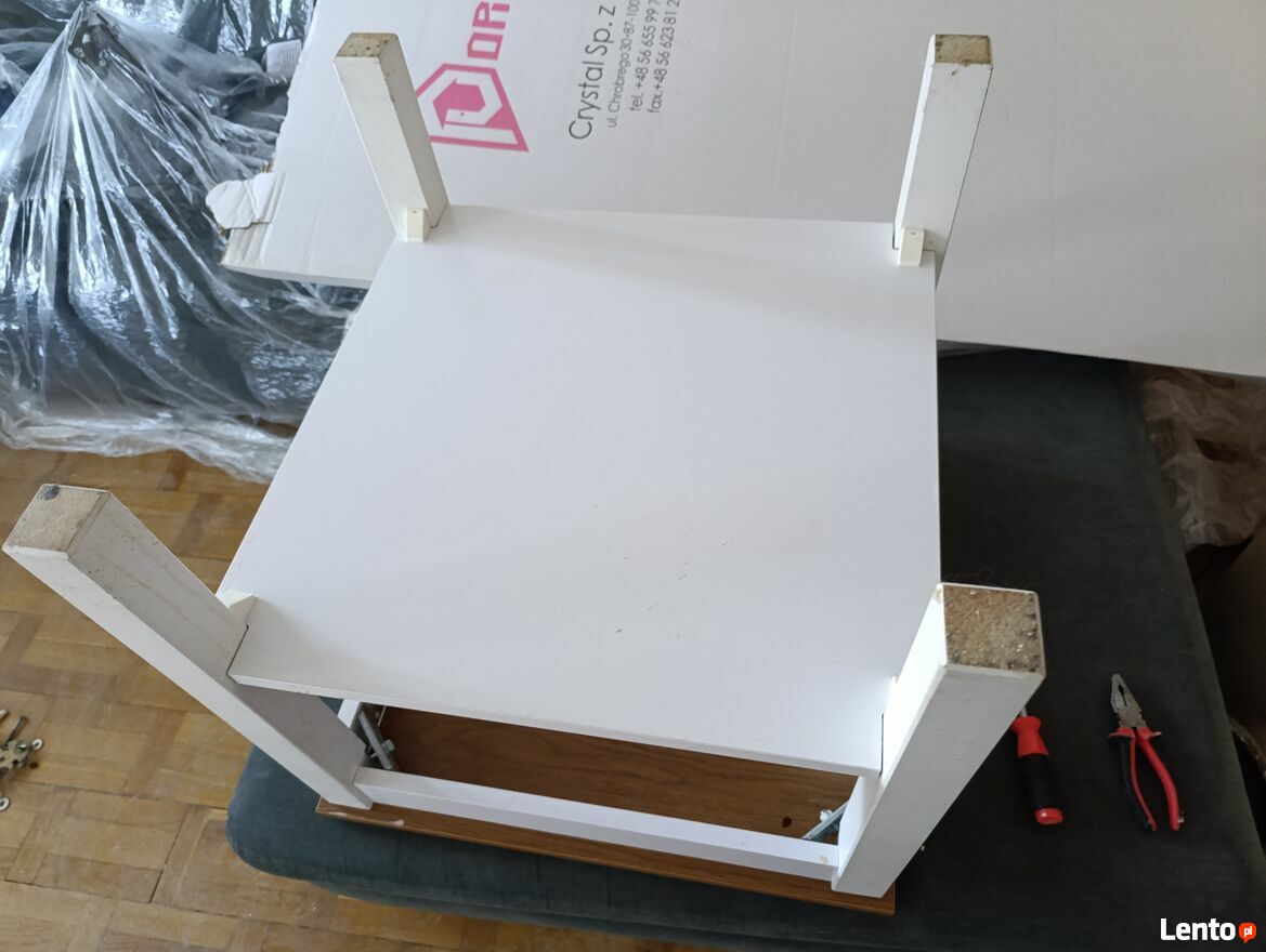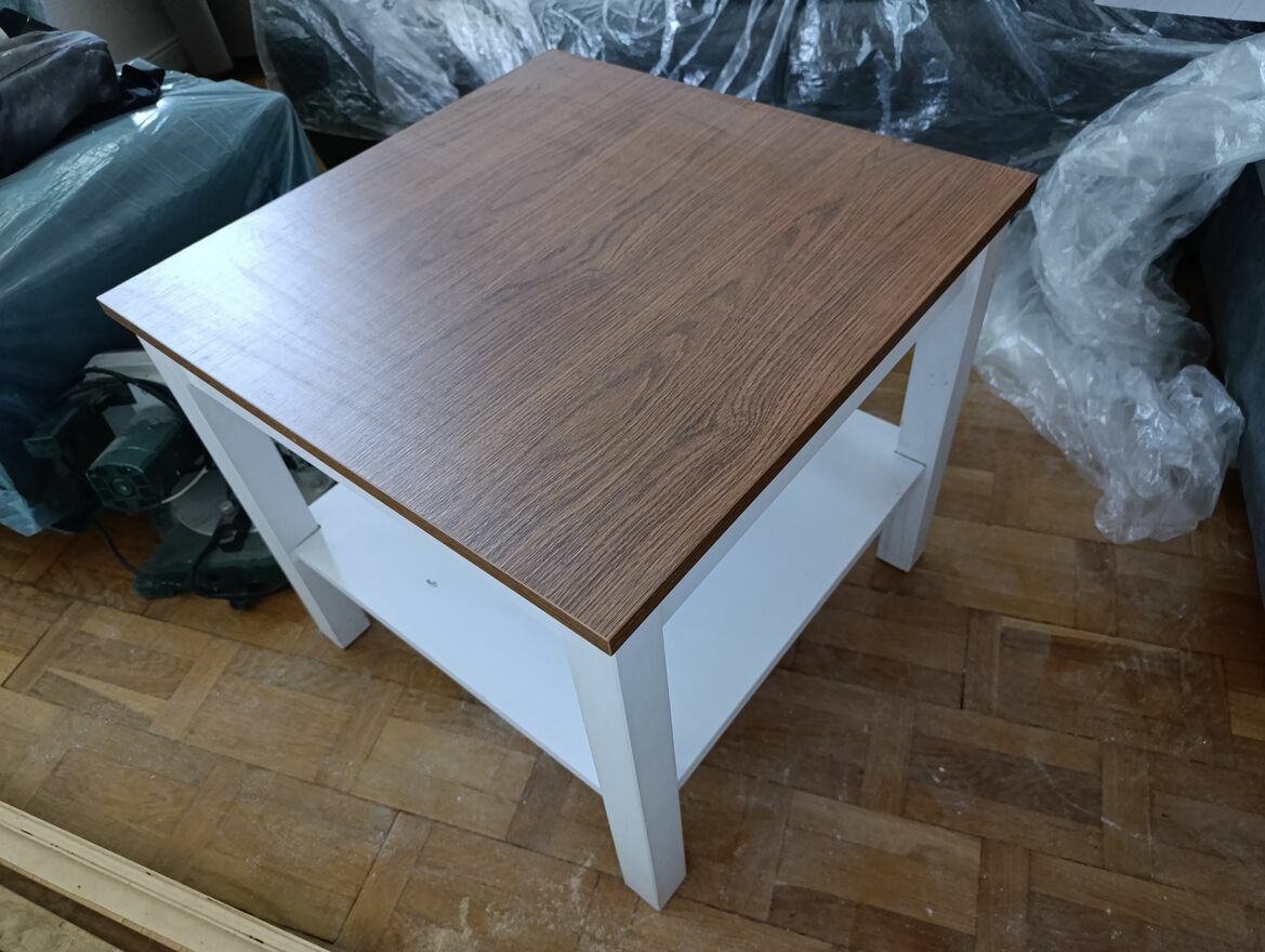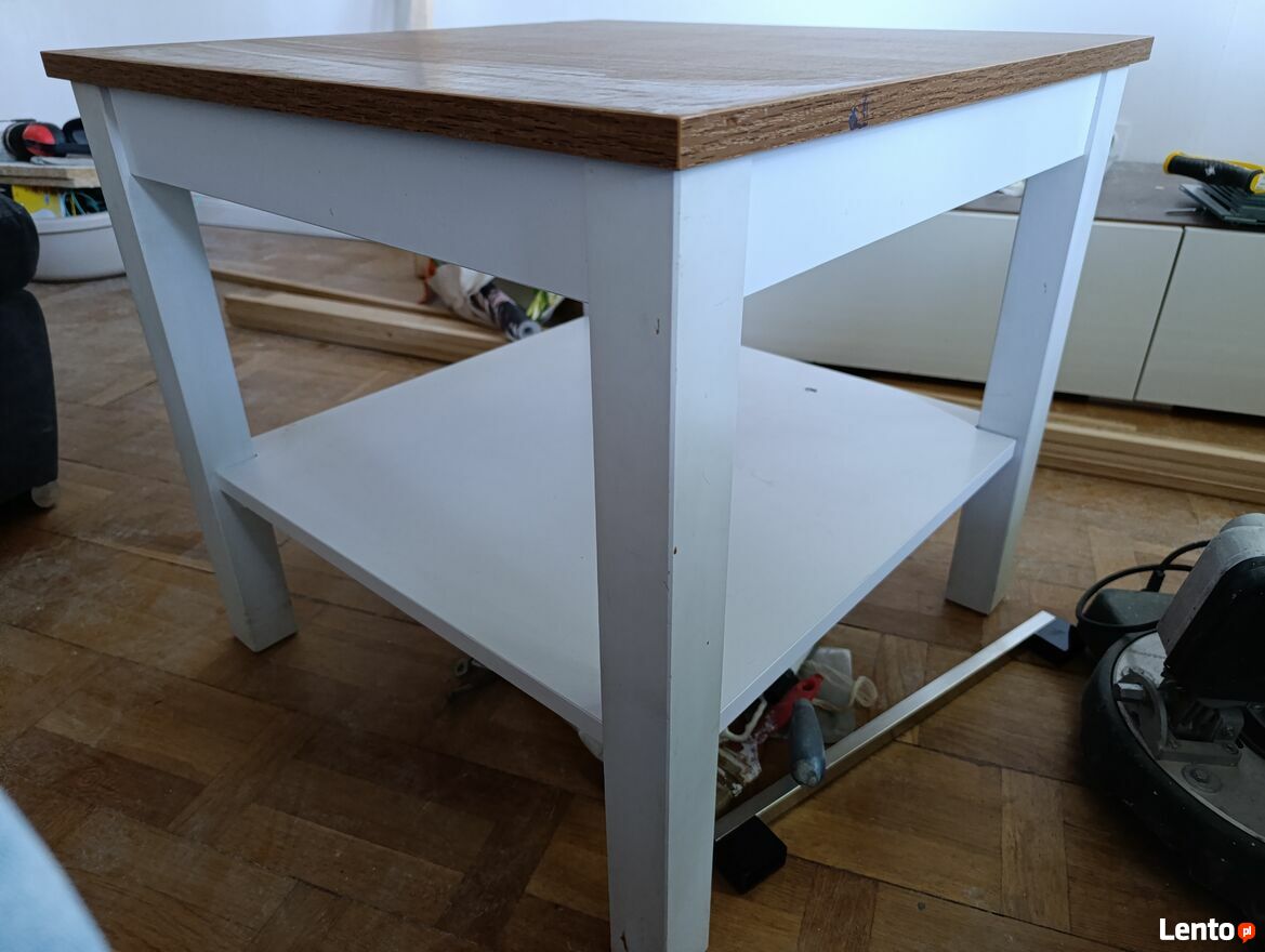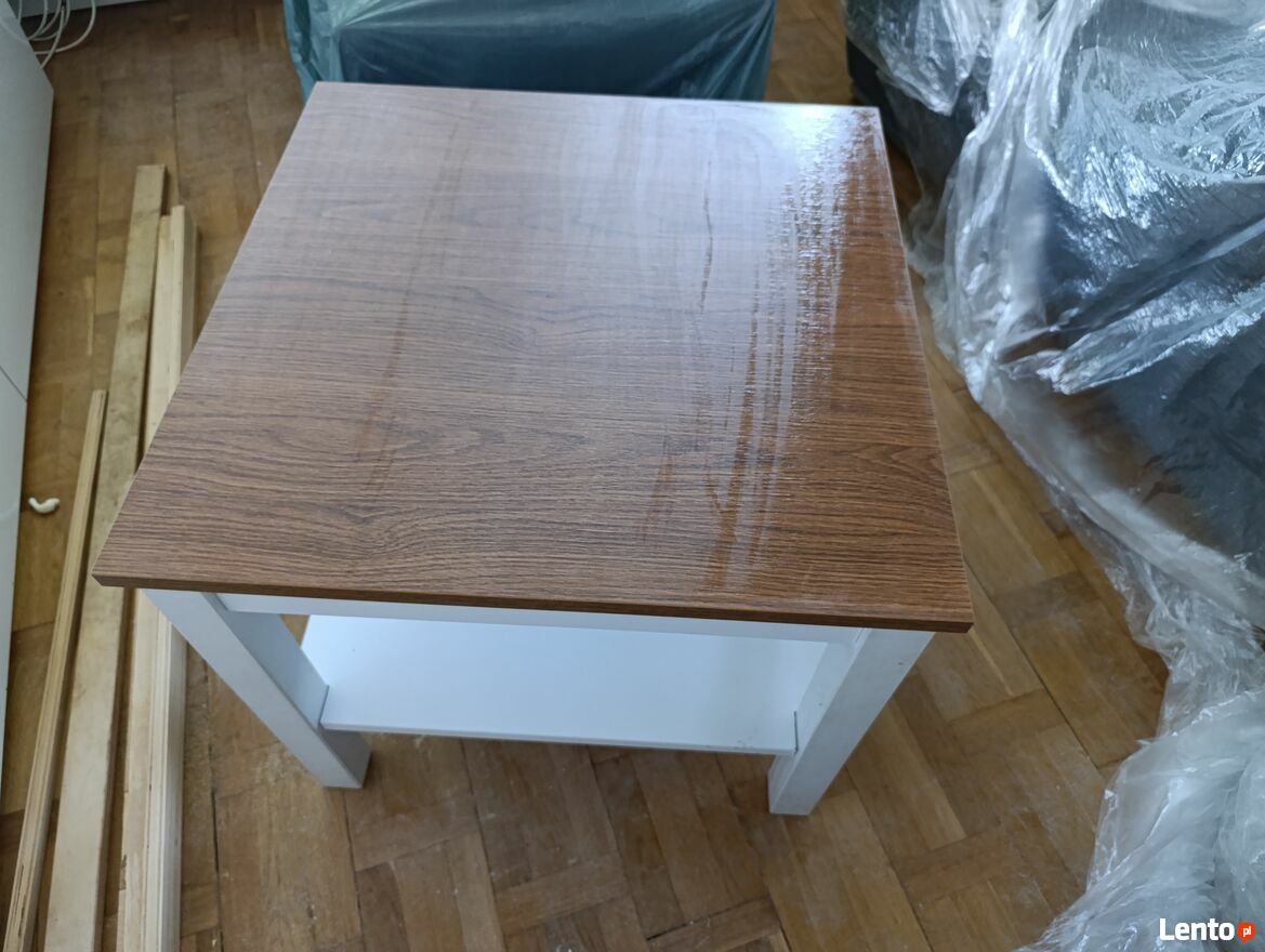 Stolik do salonu góra brąz, nogi biel, z półkąWymiary: