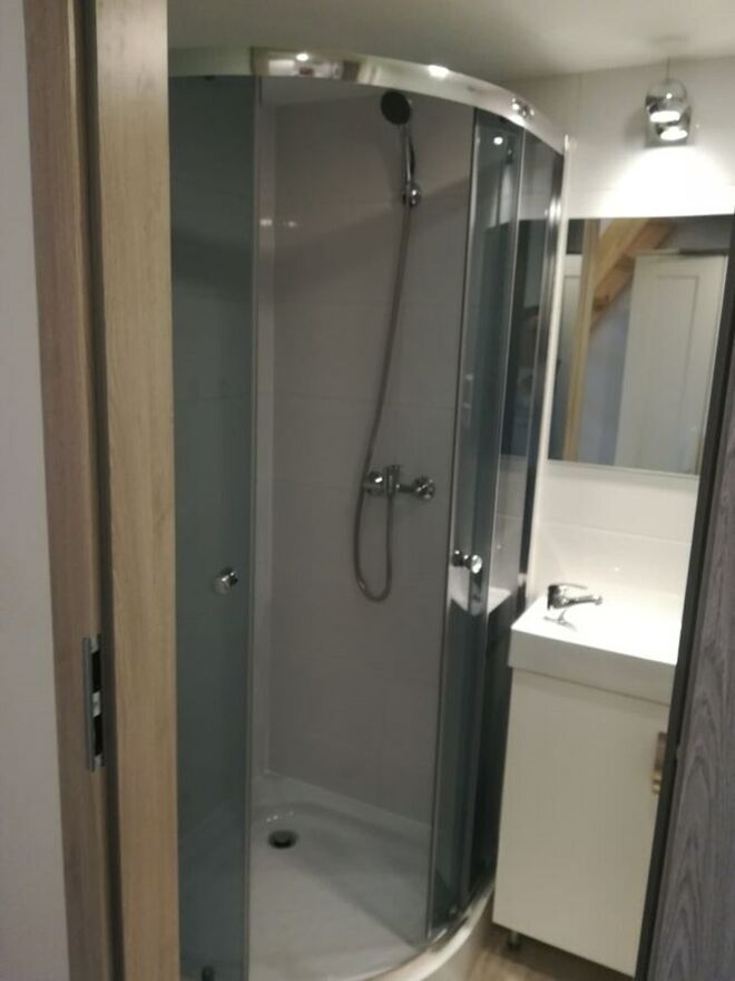 Wchodząc do mieszkania po prawej stronie znajduje się łazienka z