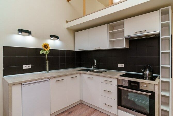 Aneks kuchenny: piekarnik, płyta grzewcza, okap, lodówka,