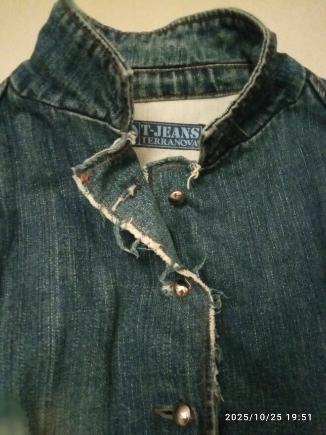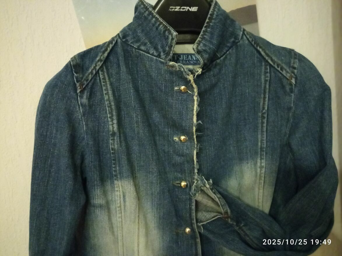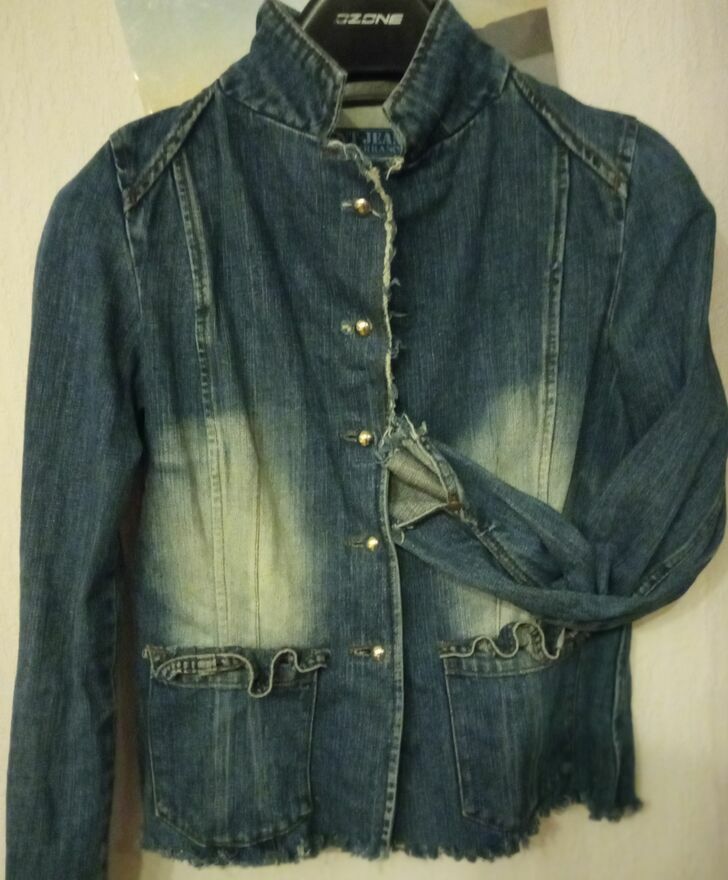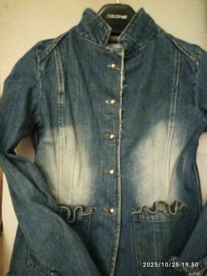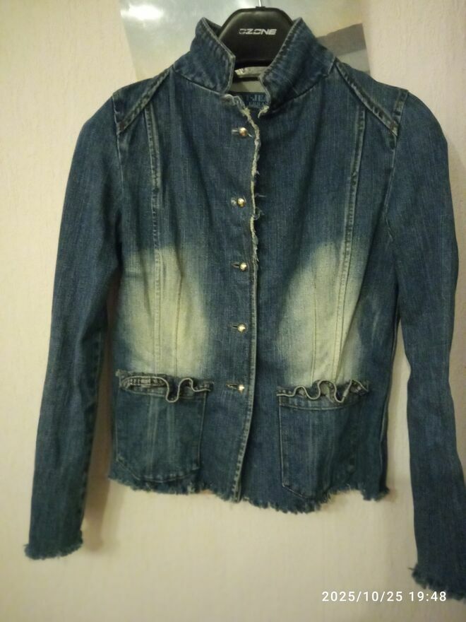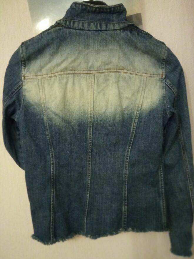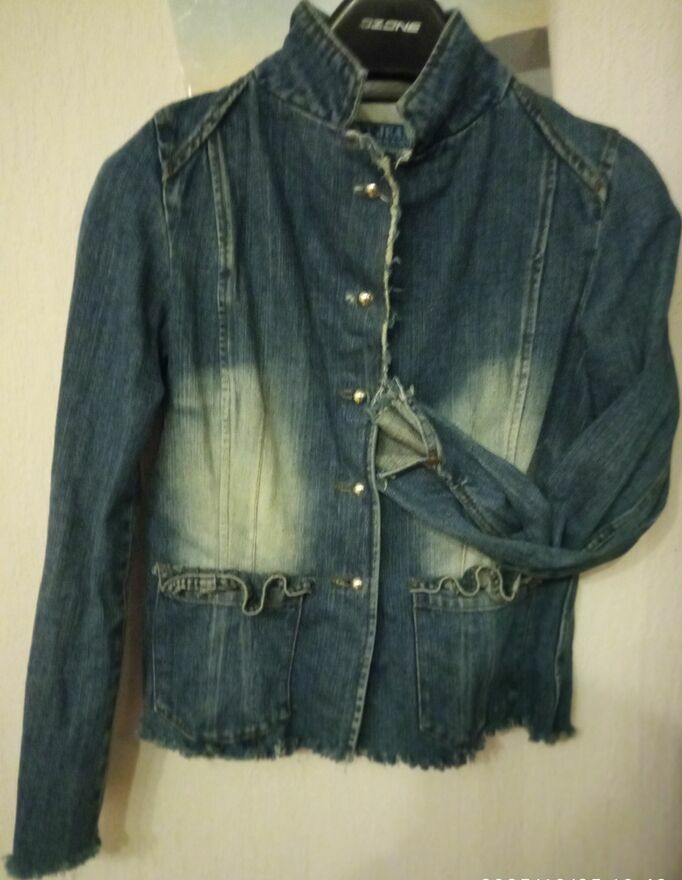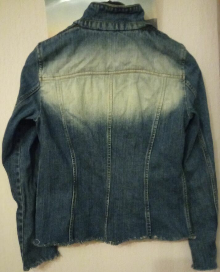 Stylowa marynarka z grubego dżinsu, nada charakteru każdej, nawet najprostszej stylizacji. będzie się ona idealnie komponować nie tylko z wieczorowymi sukienkami, koszulami, ale też z t-shirtem, a nawet jeansami! To prosty oraz oryginalny sposób na urozmaicenie zarówno eleganckiej, jak i casualowej stylizacji.To również doskonałe rozwiązane w chłodniejsze dni, w które przyda się stylowa odzież pod kurtkę lub płaszcz, zamiast swetra. Rozmiar na metce L, ale raczej M, a przy aktualnie modnych oversize - S.