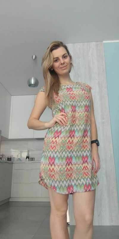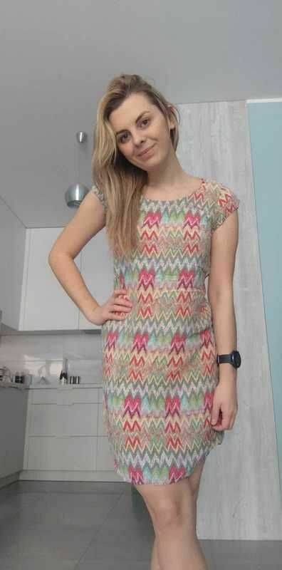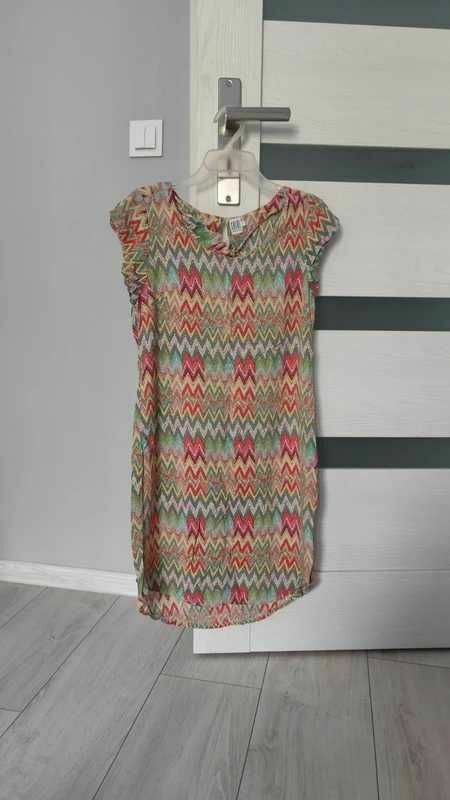 Sprzedam jasną mini sukienkę we wzory geometryczne. Bardzo wygodna, idealna na co dzień. :)100% wiskoza