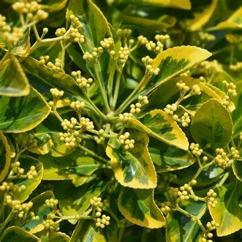Trzmielina 'Marieke' to niezawodny wybór dla miłośników eleganckiej zieleni przez cały rok. Doskonała do nowoczesnych aranżacji ogrodowych i tarasowych.