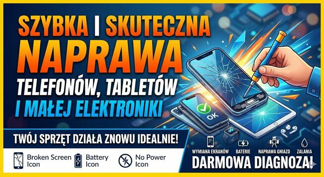Telefony i Tablety: wymiana rozbitych ekranów (szybek i wyświetlaczy), wymiana zużytych baterii, naprawa gniazd ...