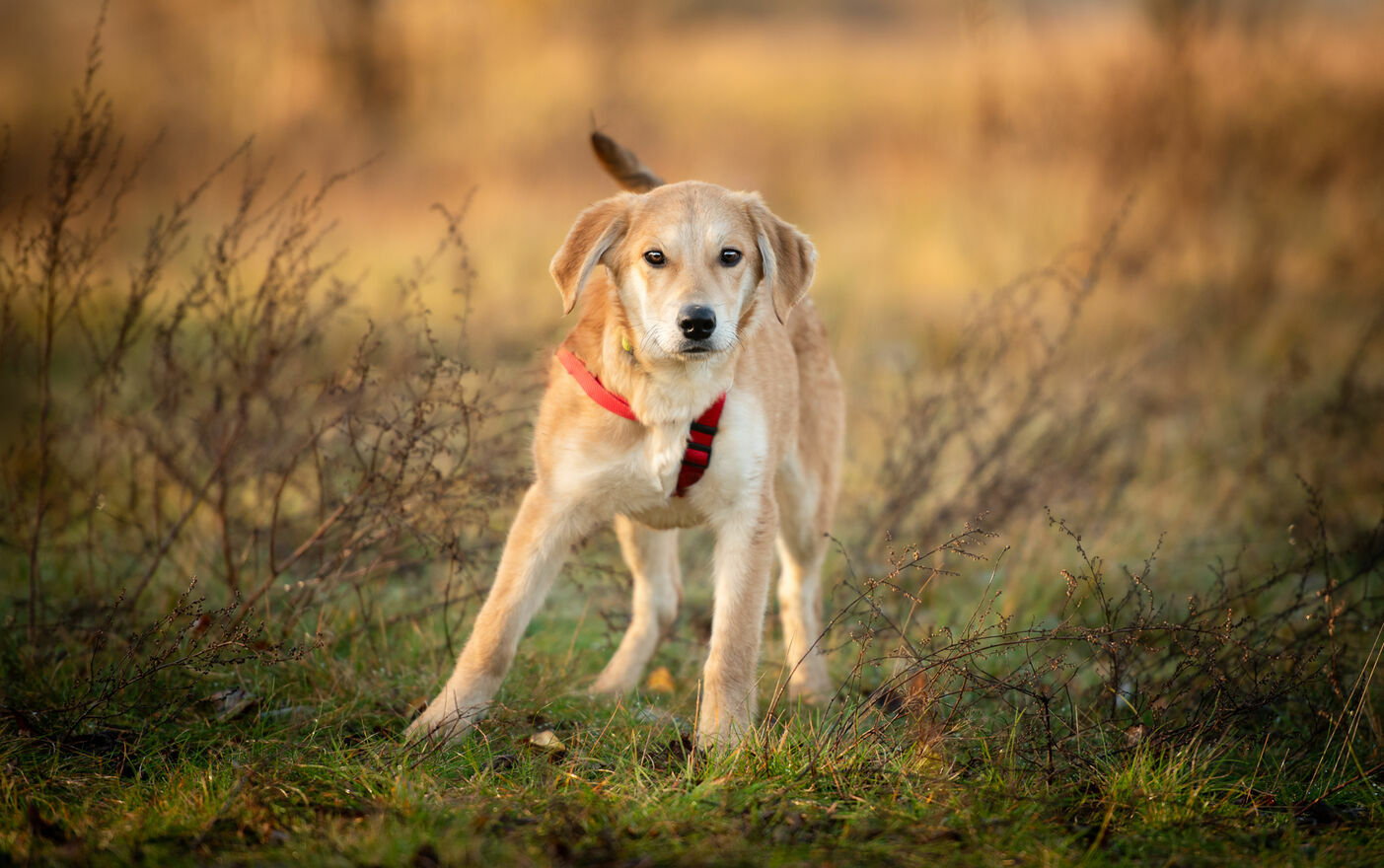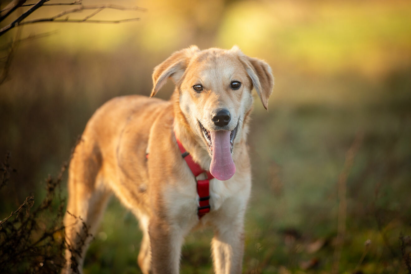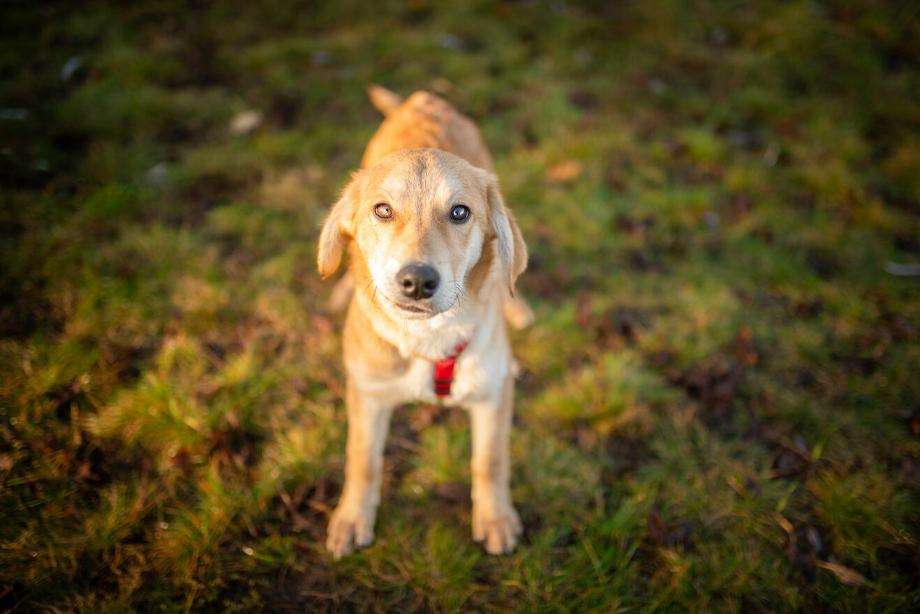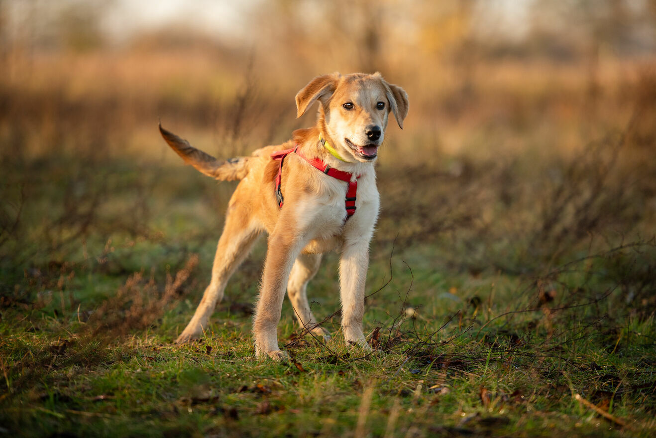 Wafel ma zaledwie 6 miesięcy, sięga do kolana i niewiele już urośnie (obstawiamy max 20/22 kg w przyszłości).Został uratowany wraz z rodzeństwem z zabitej dechami wsi, skąd trafiła do hoteliku w centrum Polski, gdzie czeka na dom.