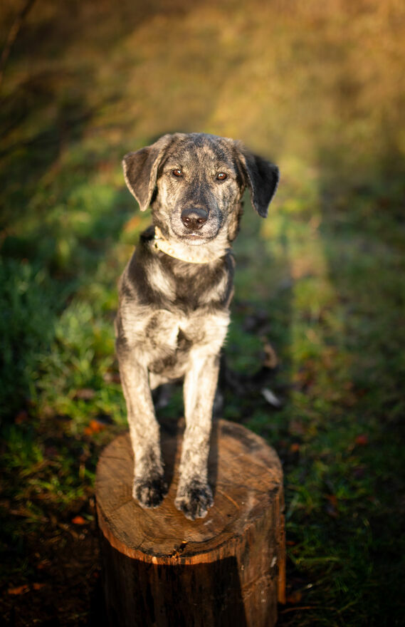 Wedel jest 6 miesięcznym szczeniakiem, sięga do kolana i niewiele już urośnie (obstawiamy max 22/25 kg w przyszłości).Został uratowany wraz z rodzeństwem z zabitej dechami wsi, skąd trafił do hoteliku w centrum Polski, gdzie czeka na dom.