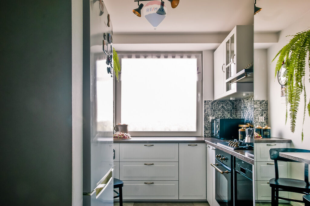 nowe instalacje oraz meble w zabudowie z białymi frontami i