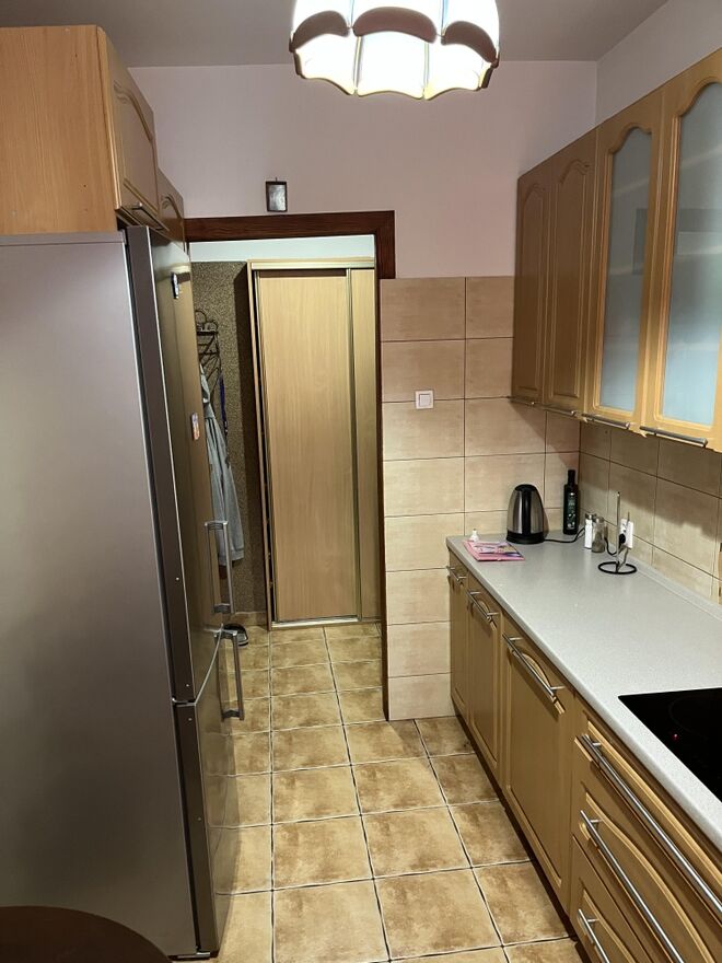 Mieszkanie w bardzo dobrym stanie, w pełni umeblowane. Kuchnia wyposażona w lodówkę z zamrażarką, piekarnik oraz mikrofalówkę.
