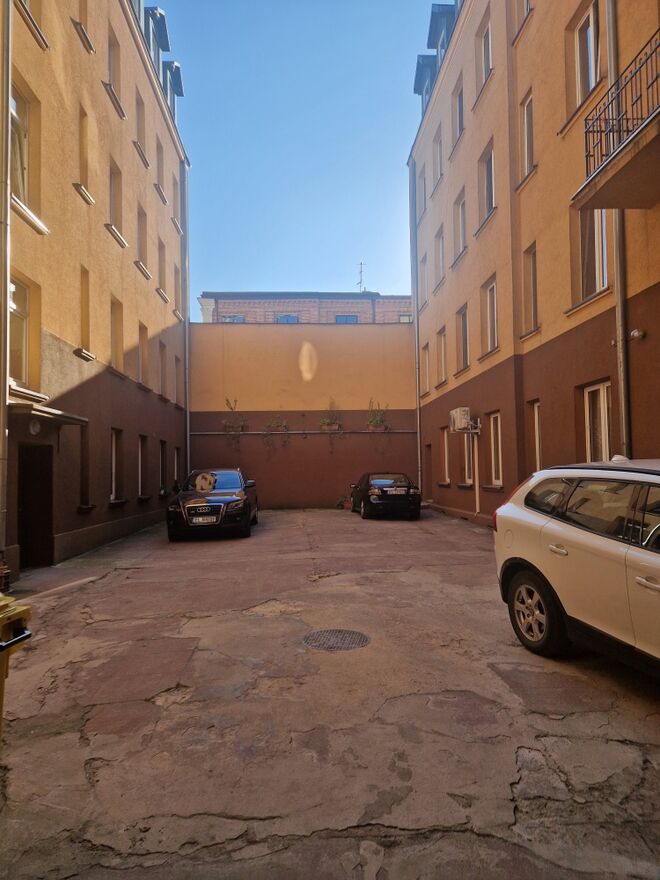 The courtyard is accessible for residents' cars. Additionally, a guaranteed covered parking space is available just 20 meters from the building for 350 PLN/month.