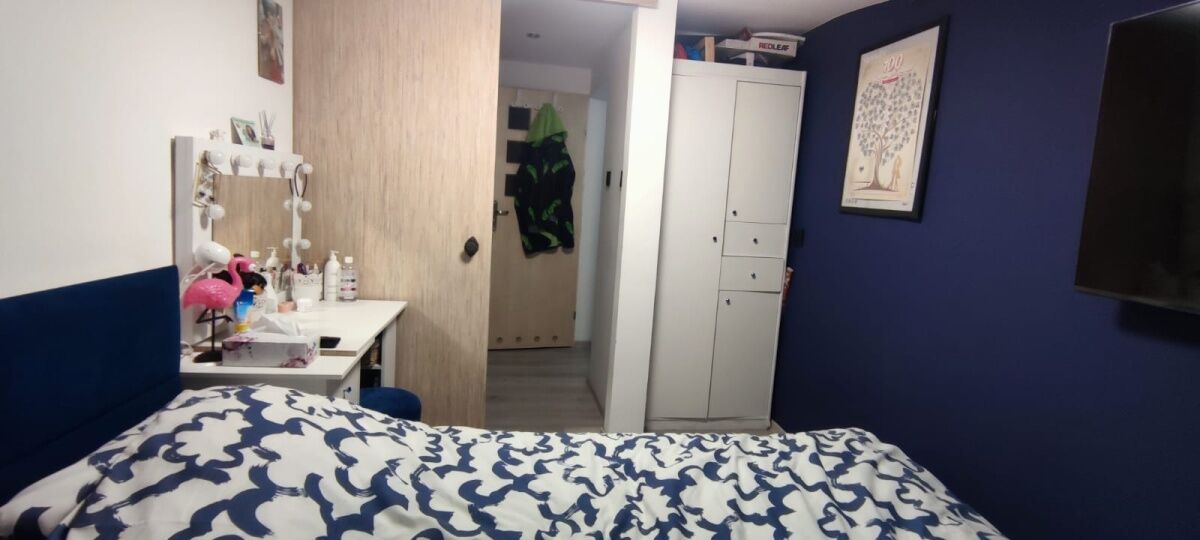 Sypialnia z szafą i toaletką, łóżko
